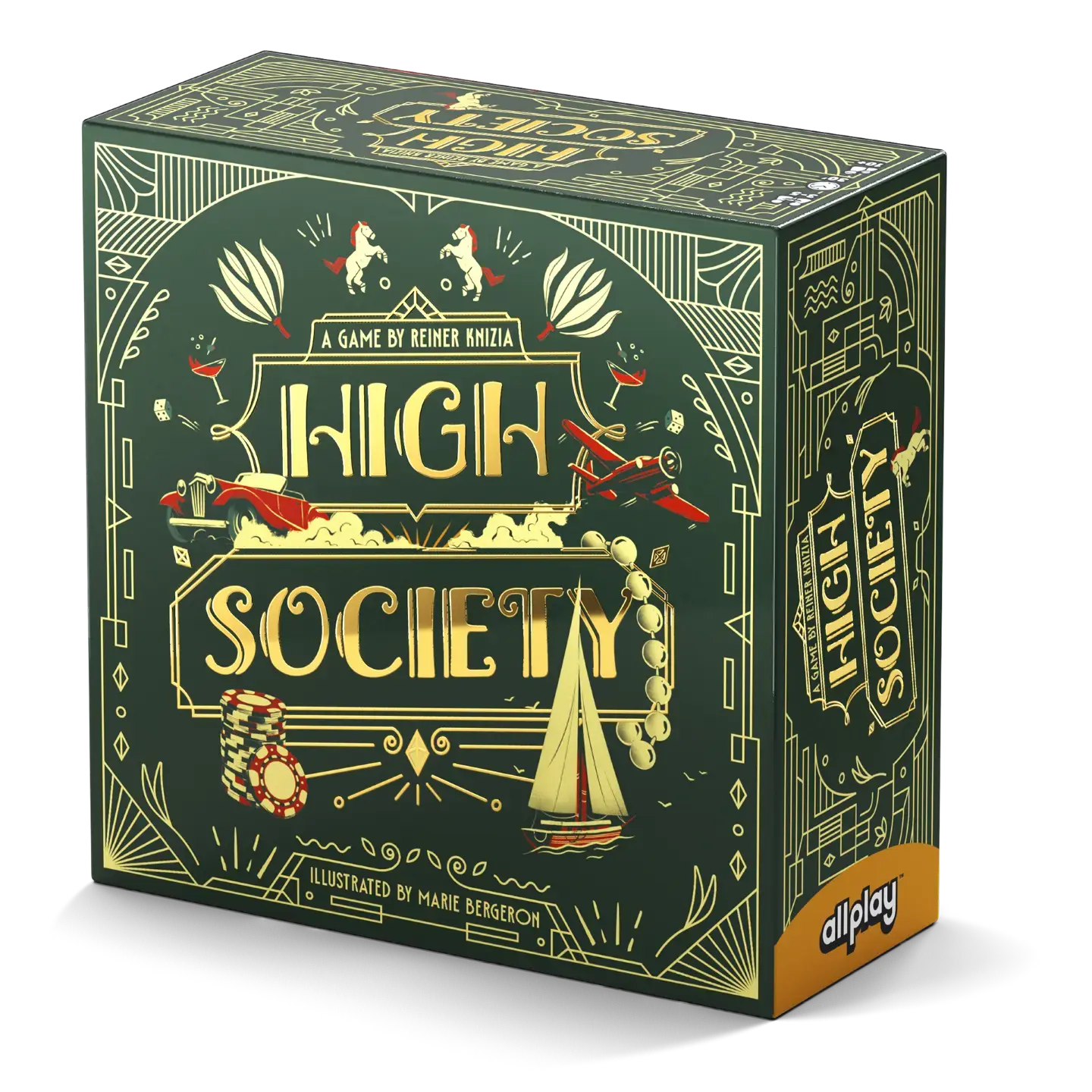 In High Society, you and up to 4 of your high-roller friends will flaunt your wealth to cement your place in the upper crust. Bid on luxuries like exquisite jewels, vintage wine, or the grand opera to increase your reputation. But, watch out for scandals!